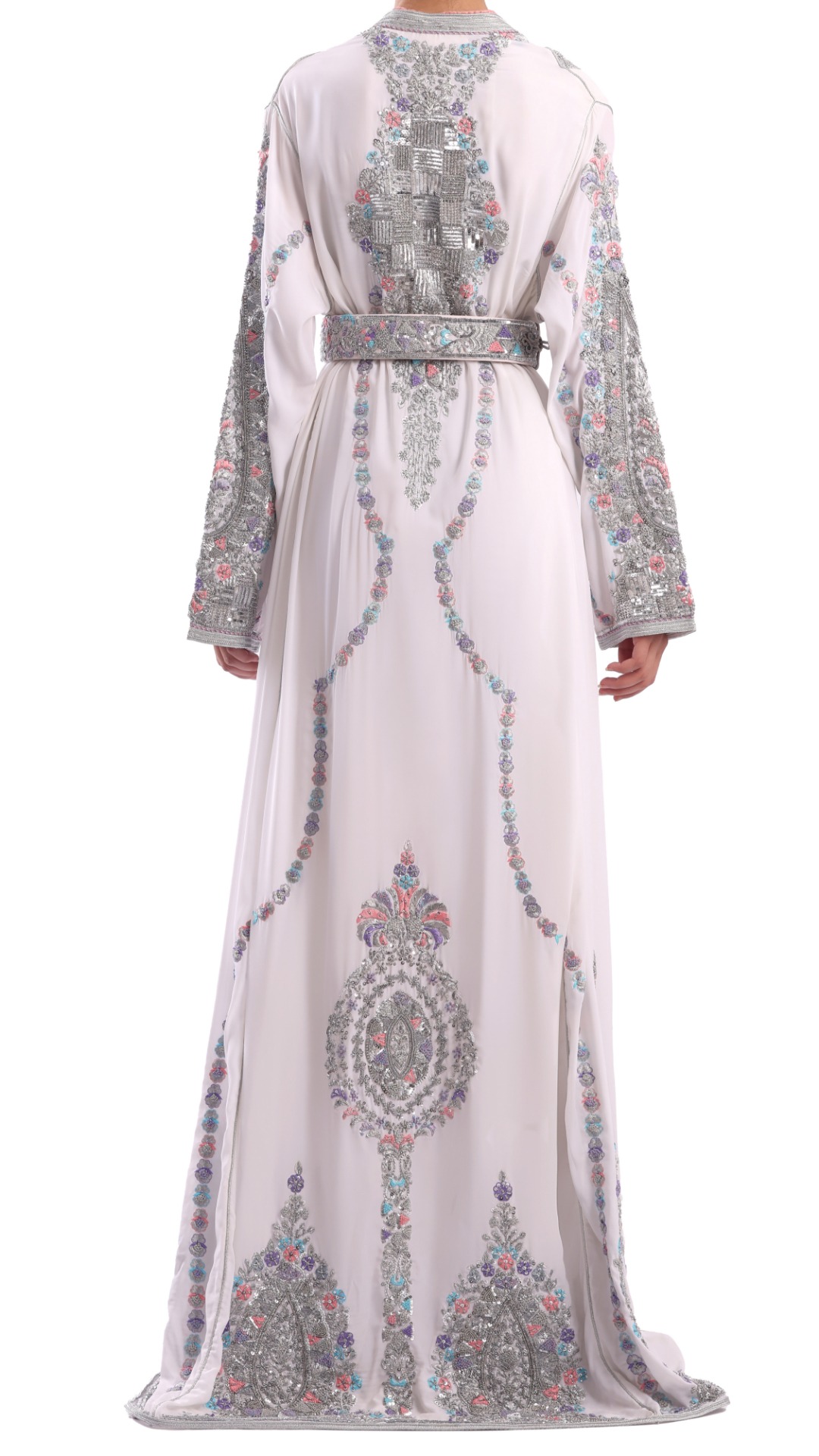 Rehaussez votre collection avec le caftan Radiant White Harmony, véritable symbole de grâce et de beauté.